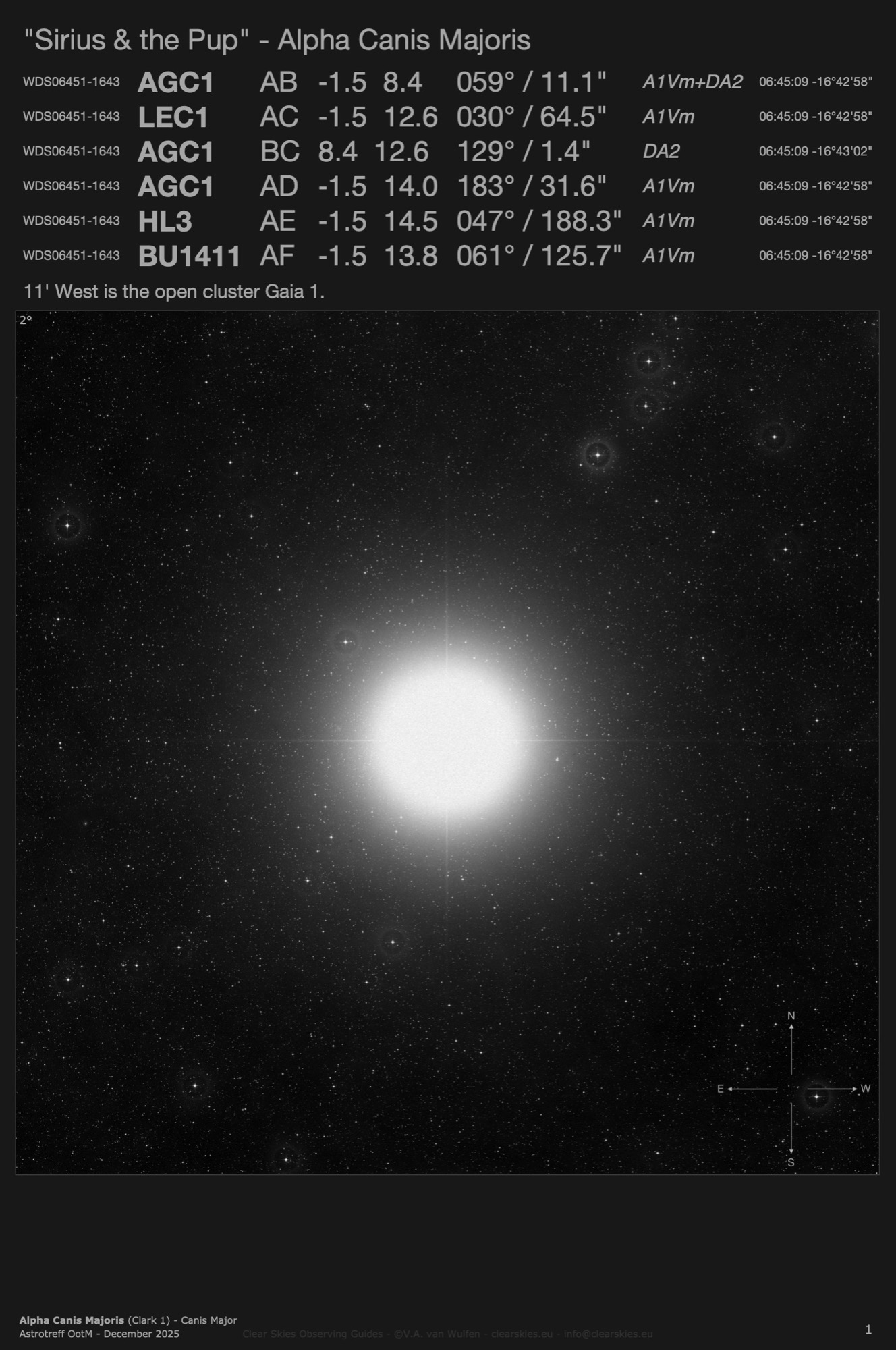 Double star "Sirius & the Pup" - Alpha Canis Majoris (Clark 1 - WDS06451-1643) in Canis Major