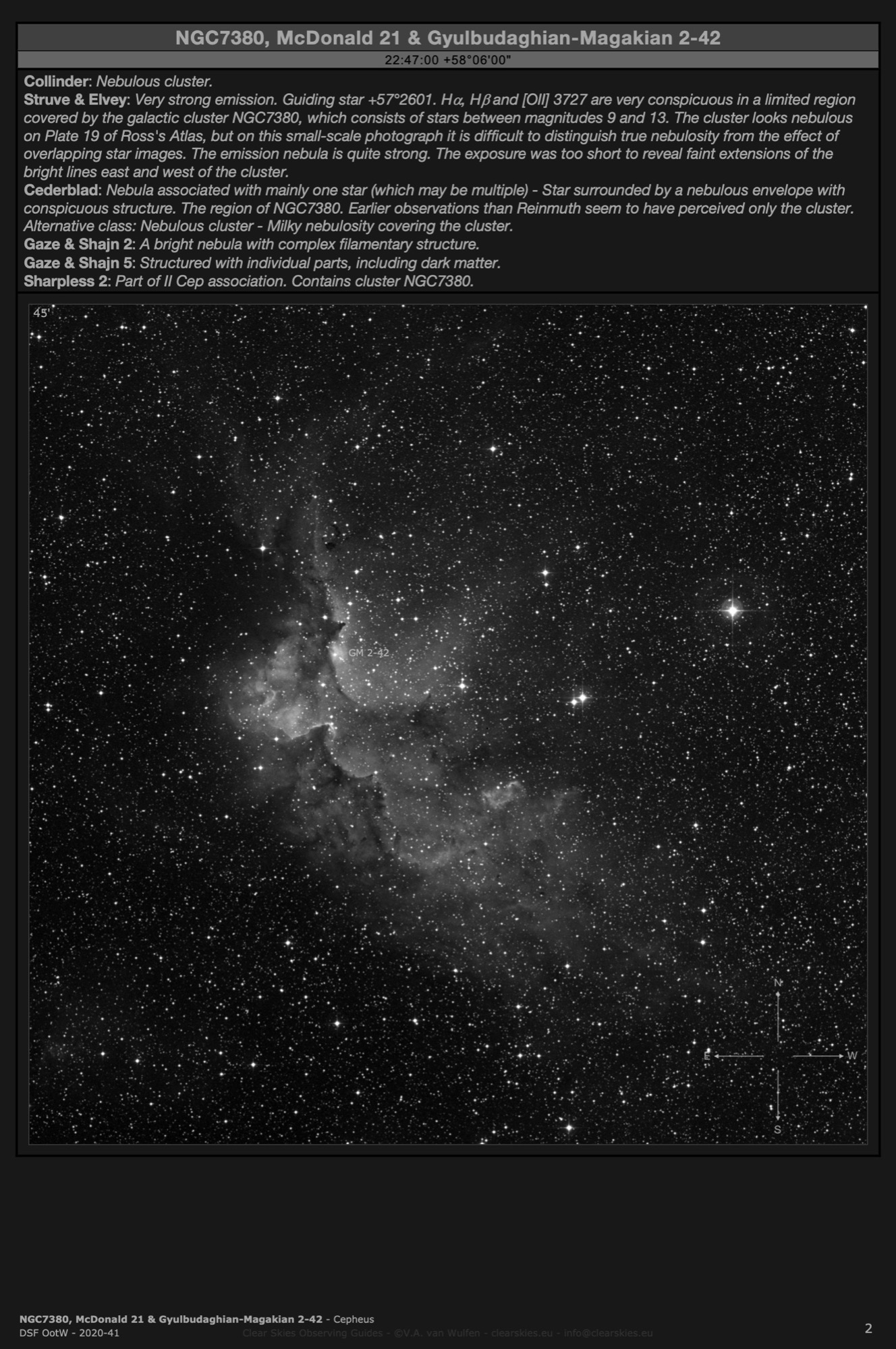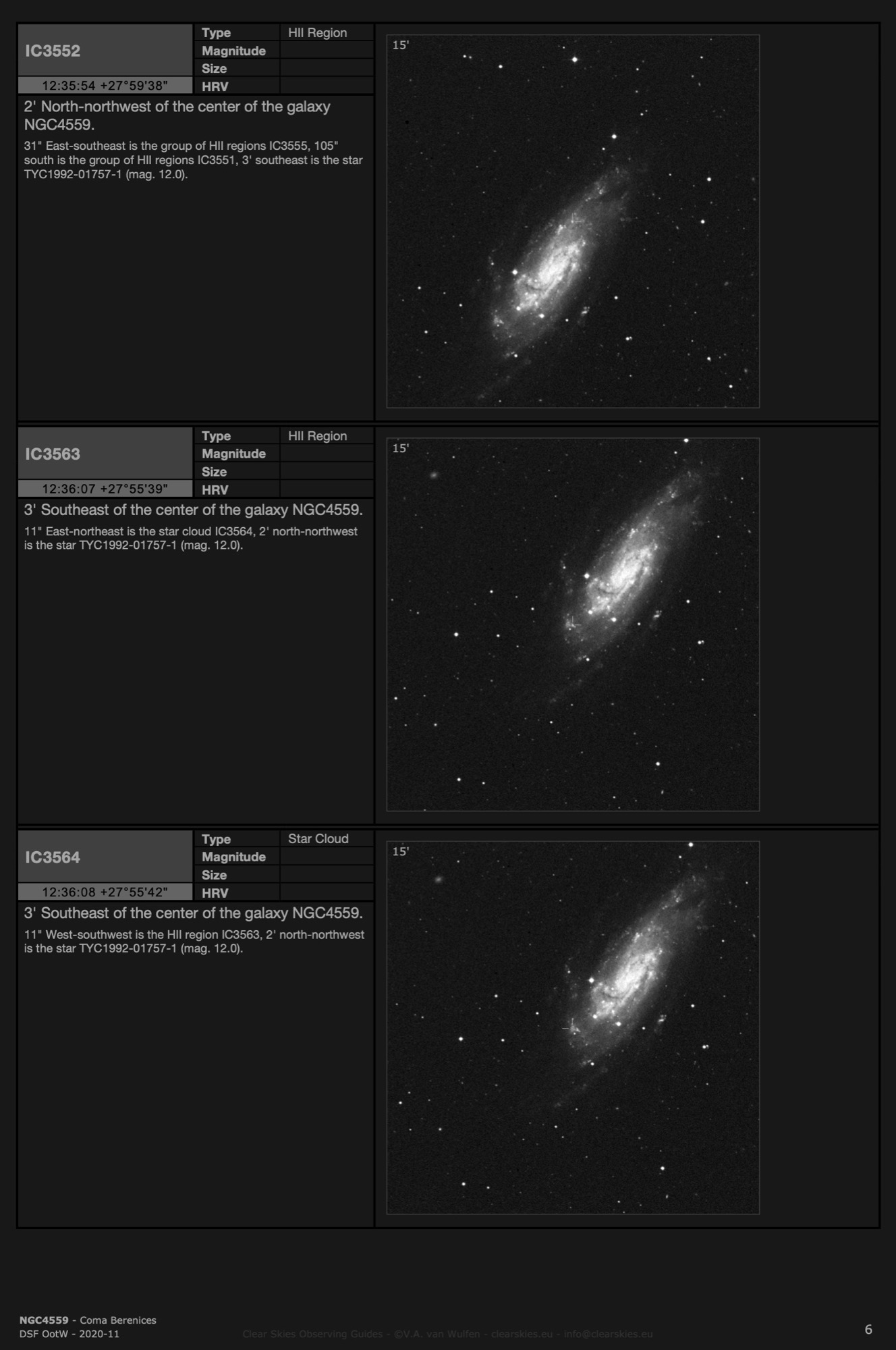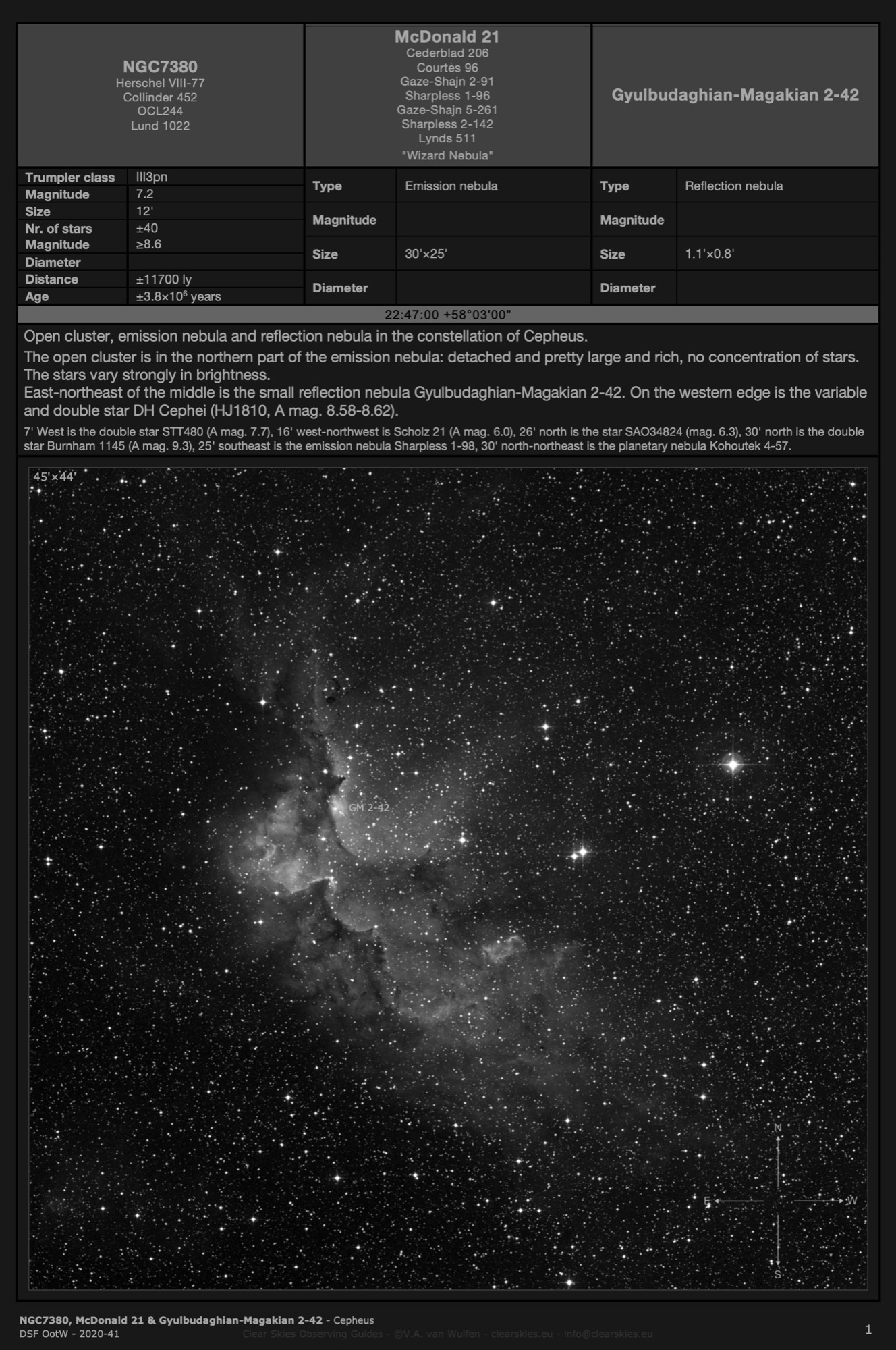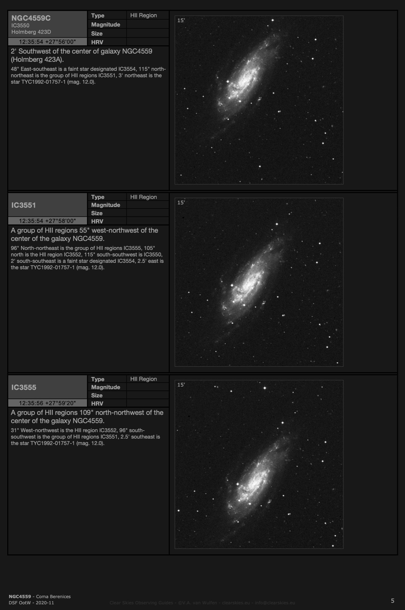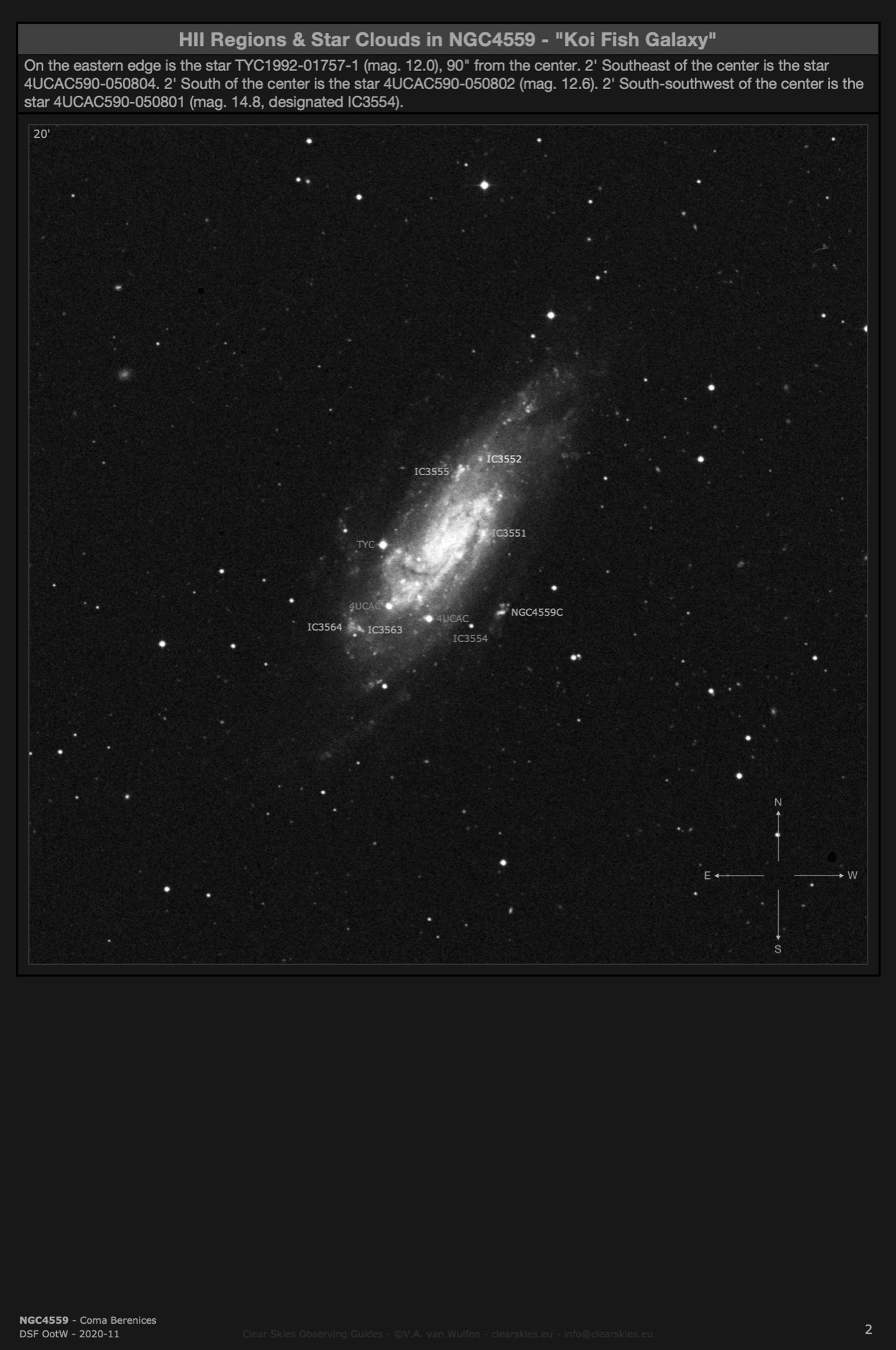 Observing Guides in all four CSOG image orientations for Deep Sky Forum's Objects of the Week in the year 2020.