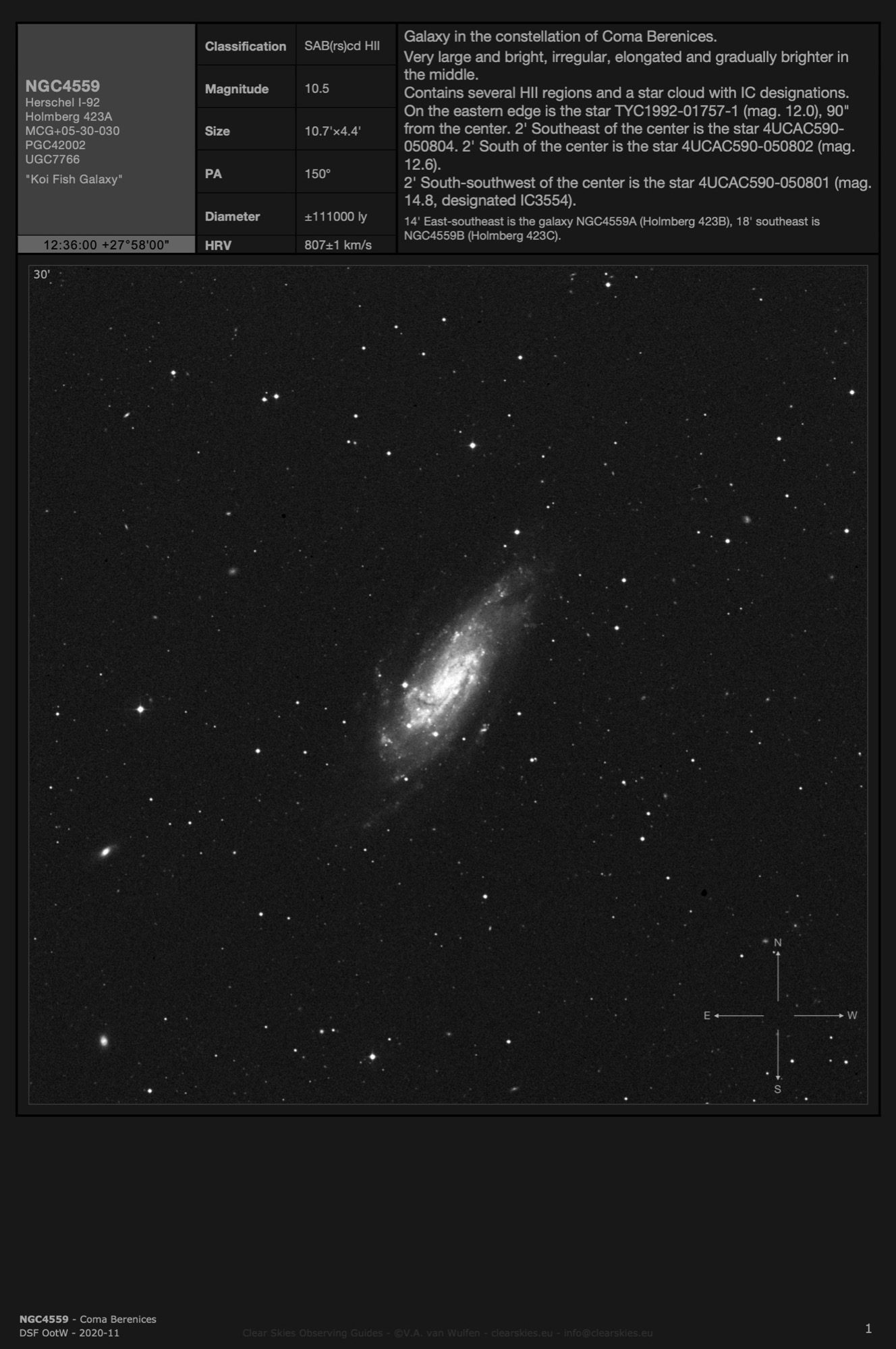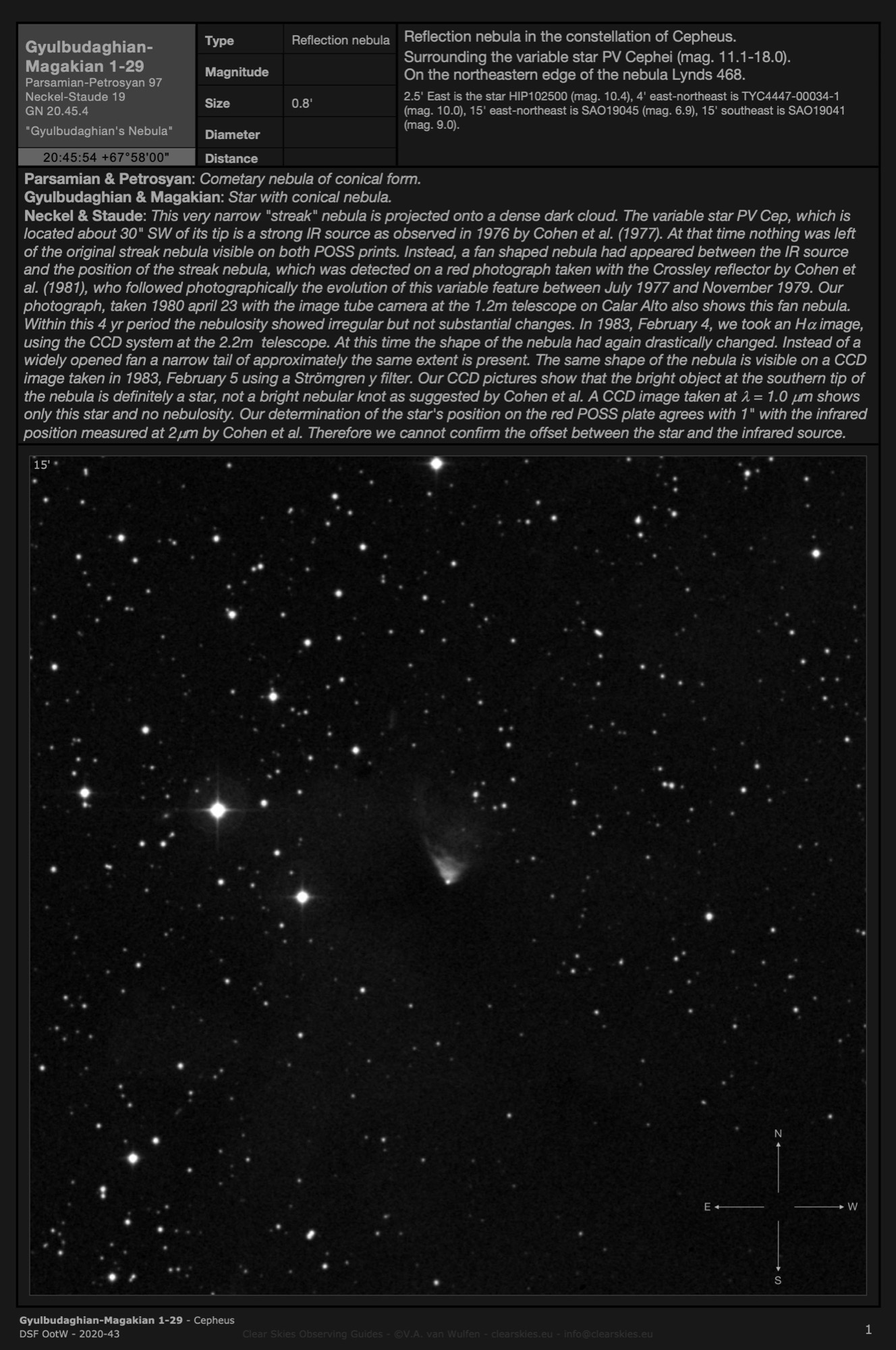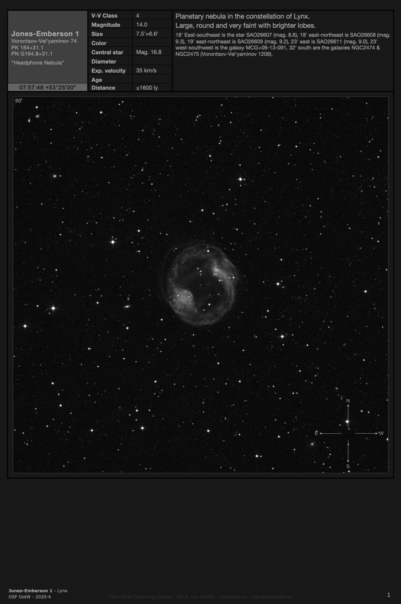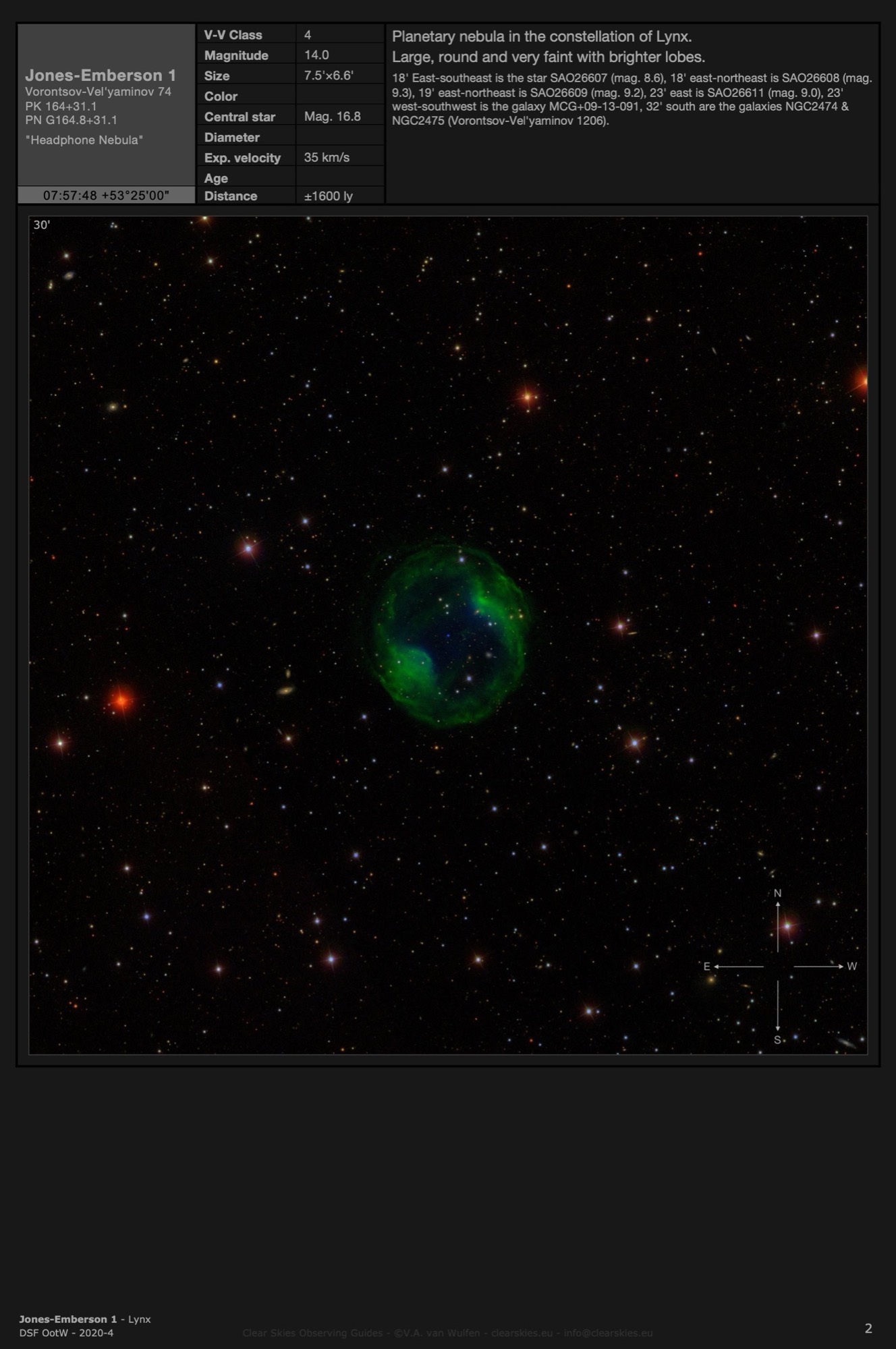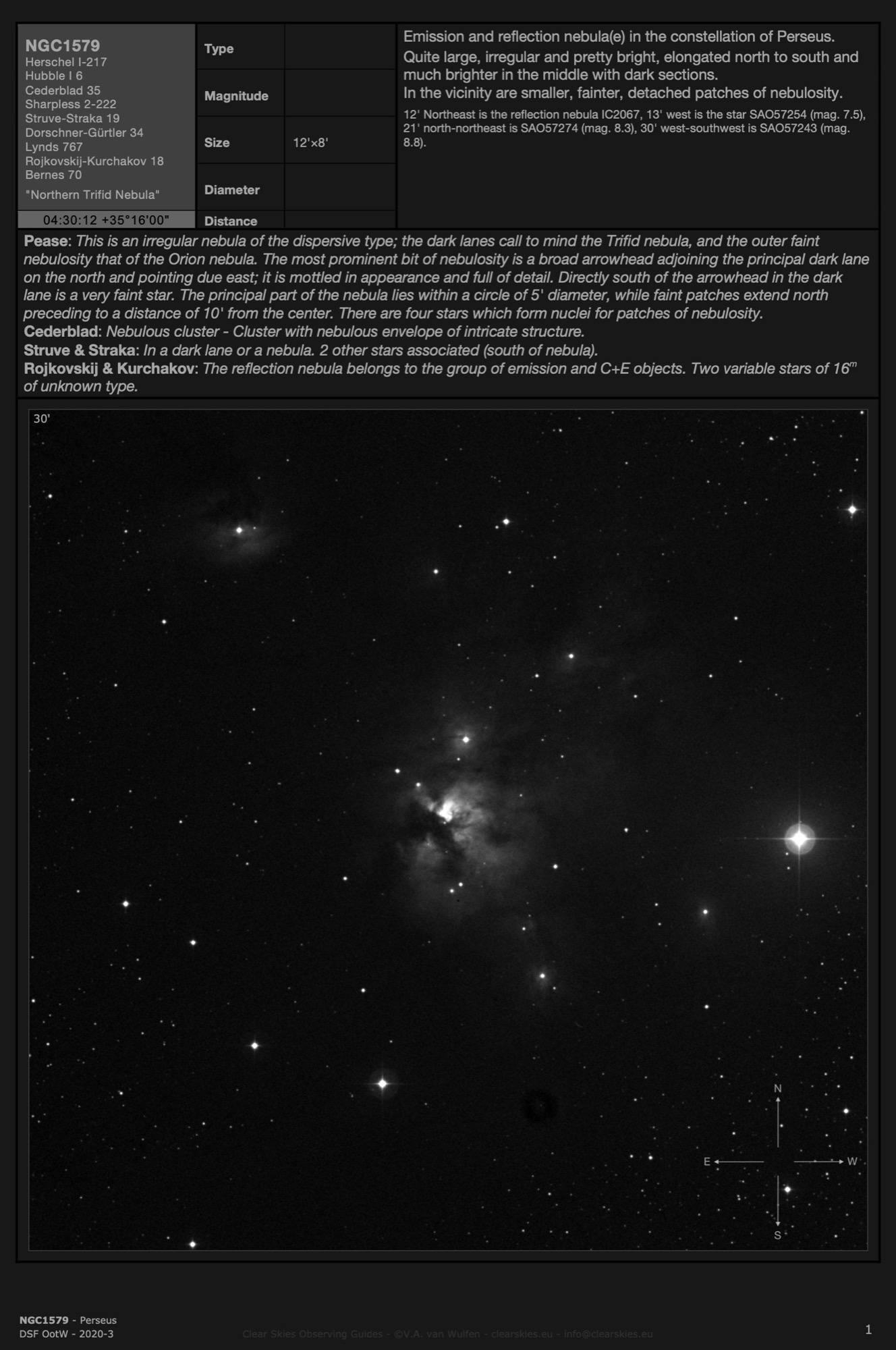 Observing Guides in all four CSOG image orientations for Deep Sky Forum's Objects of the Week in the year 2020.