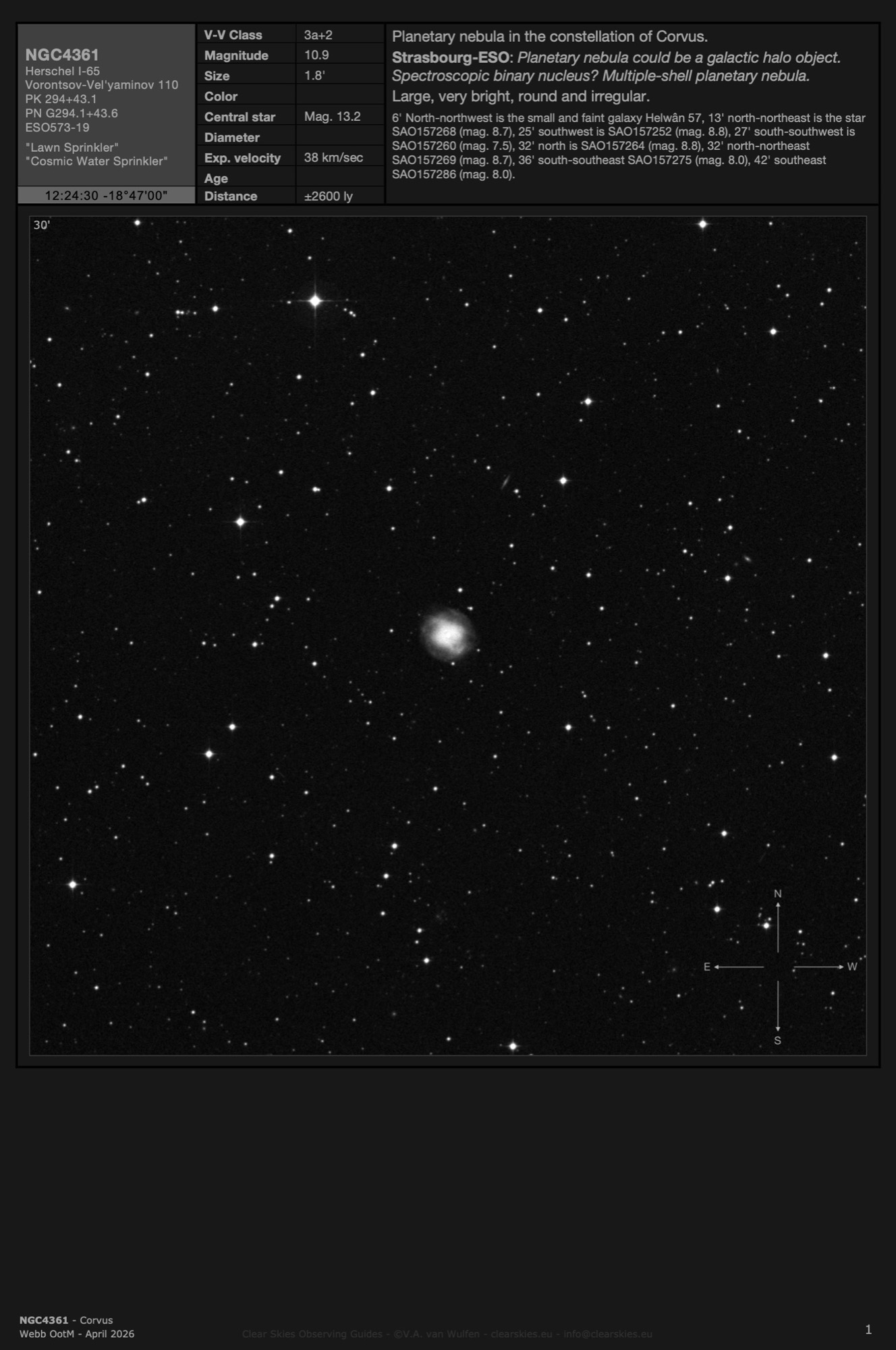 Planetary nebula NGC4361 - the "Lawn Sprinkler" in Corvus